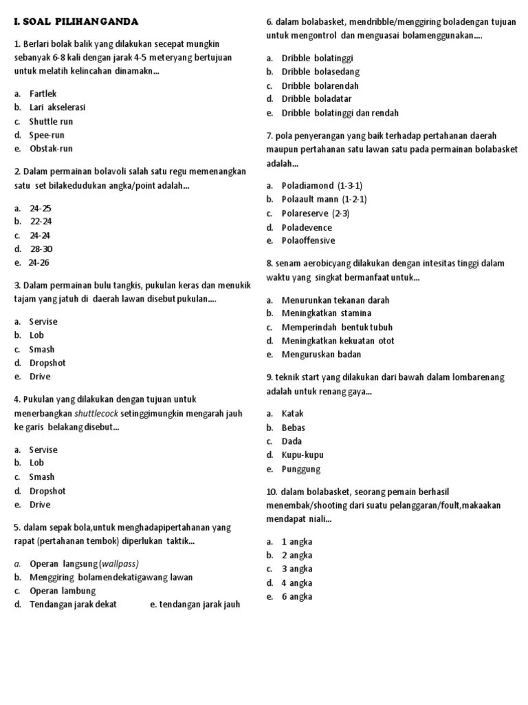 Adapun soal soal sosiologi dibawah ini akan dibahas lengkap beserta dengan jawabannya. Play this game to review undefined. · pertanyaan baru di penjaskes. · jawaban · ada pertanyaan lain? Soal penjas materi bola basket pilihan ganda beserta jawabannya ada sekitar 100 butir soal pgpilihan gandapilgan penjasorkes tentang materi bola .